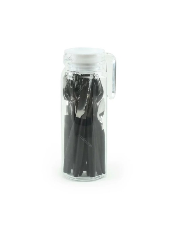 JOGO DE TALHERES INOX PRETO C/ JARRA DE VIDRO 25 PECAS UN.