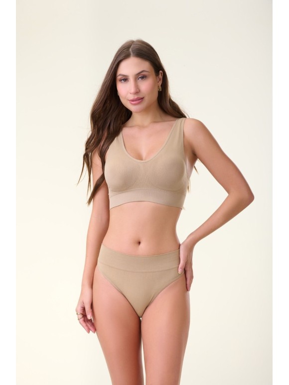 Top Bege Adulto G Sem Costura com Bojo Removível, Confortável, Anatômico, Toque Suave e Ideal para Uso Diário