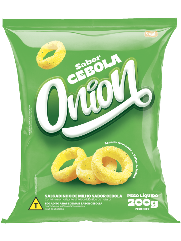 Salgadinho de milho no delicioso sabor de cebola, a Onion faz parte da linha Mega Pack, de produtos com embalagem grande. Esses salgadinhos são feitos para juntar as pessoas que você gosta e curtir o momento.