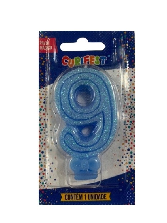 VELA SUPER NUMERO SIMPLES AZUL CLARO N 9 - (1759) UN. CURIFEST