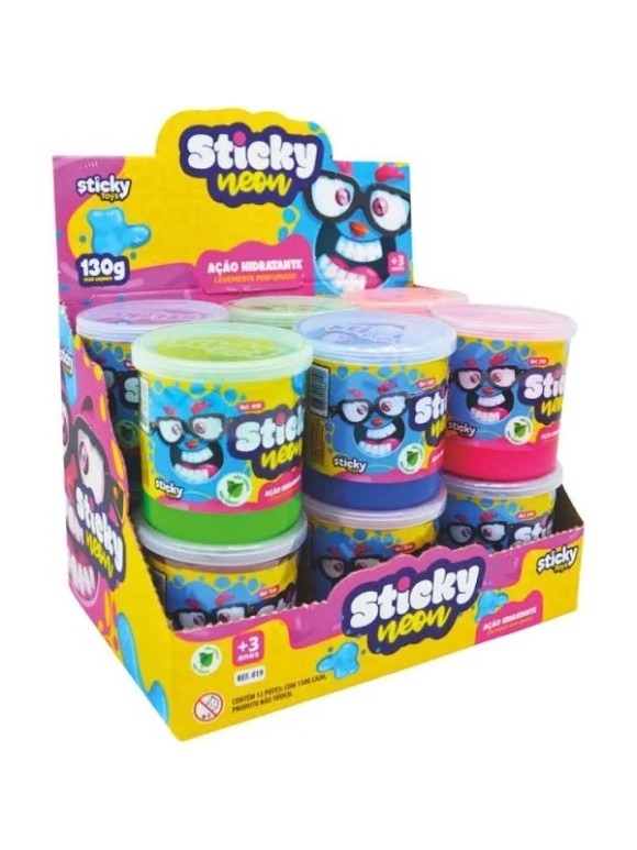 SLIME STICKY NEON 130G DISPLAY C/12PCS CORES SORTIDAS UN. STICKY