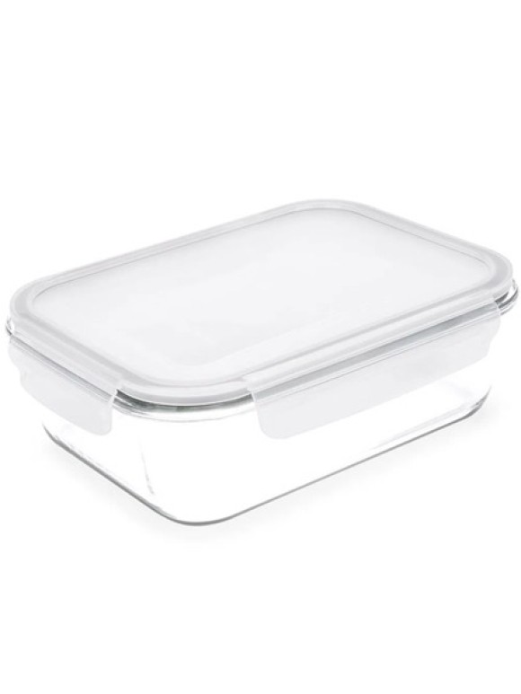 POTE DE VIDRO 1,5L HERMETICO RETANGULAR BRANCO UN. INGA