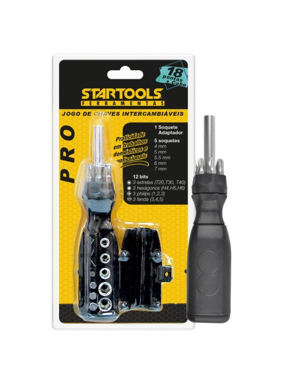 JOGO DE CHAVES INTERCAMBIAVEIS C/18 PONTAS E CABO UN.