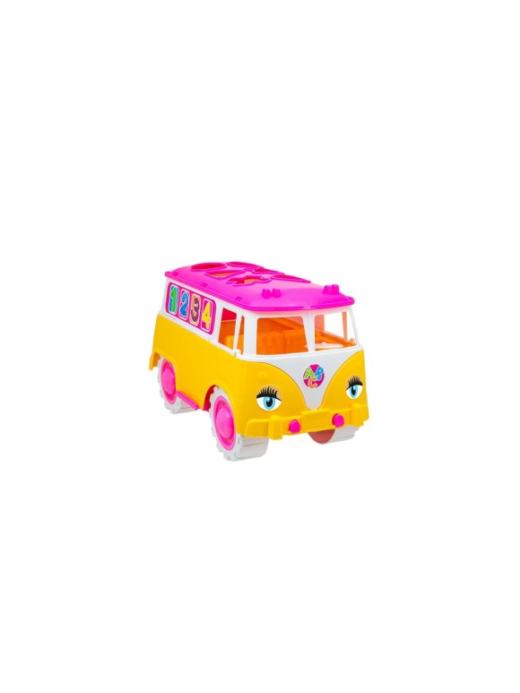Carrinho de Brinquedo Kombica Dora Com Peças Geometricas Para Encaixar Roda Livre Carro Infantil Colorido