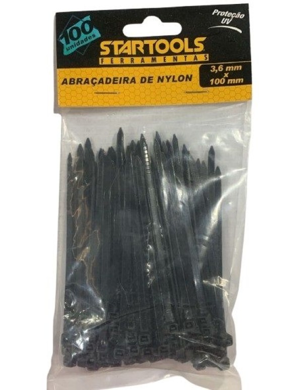 ABRACADEIRA DE NYLON PRETA 3,6X100MM PCT C/100 UN