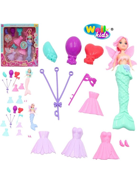 BONECA MILA SEREIA ENCANTADA KIT C/12 PCS UN. WELLMIX