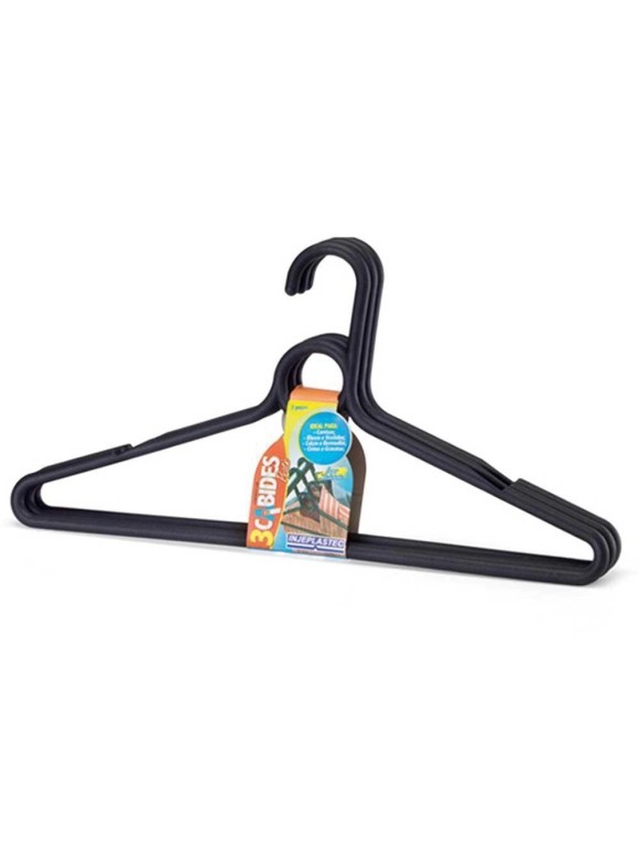 Produto: Cabide Resistente Preto – Kit com 3 Unidades