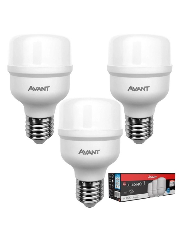 LAMPADA LED BULDO CX C/3 20W 1600 LUMENS 6500K LUZ BRANCA UN. AVANT