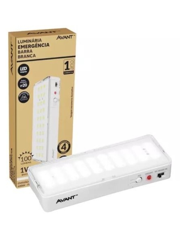 LUMINARIA LED EMERGENCIA BARRA BRANCA 100 LUMENS 1W LUZ BRANCA BIVOLT UN.
