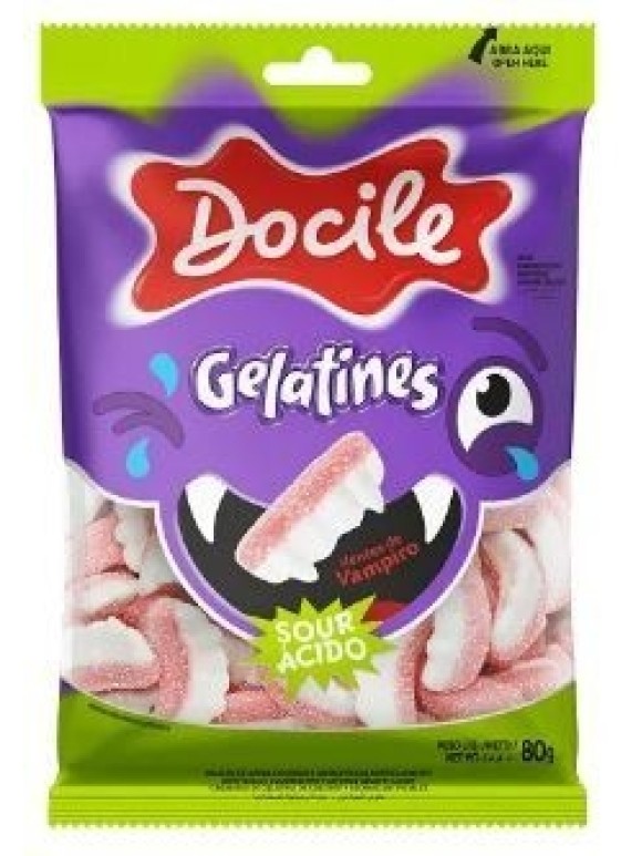 BALA DE GELATINA GELATINES DENTE DE VAMPIRO ACIDO 80G UN. DOCILE