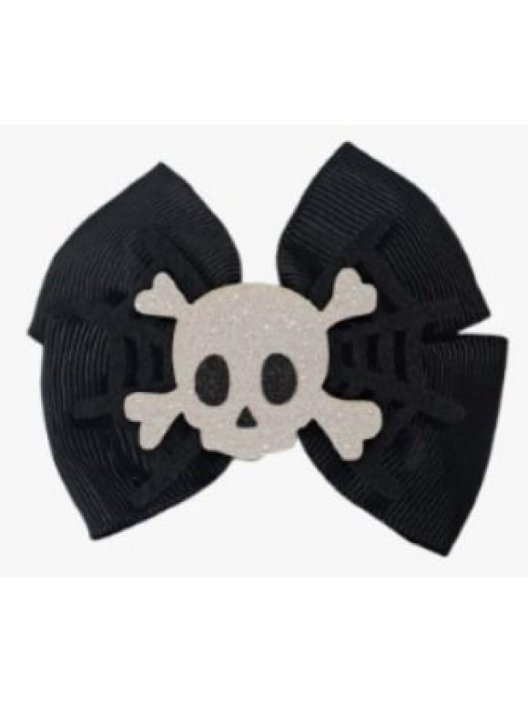 Presilha Laço Duplo Caveira 8cm c/2 Peças – Acessório de Cabelo Halloween para Fantasias Infantis e Adultas