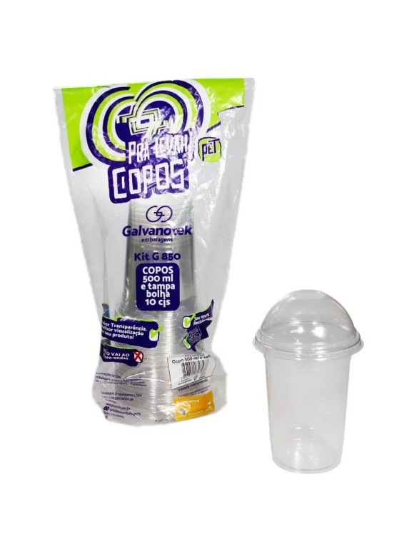 Pote Plástico 500ml Descartável Redondo c/tampa Bolha Galvanotek
