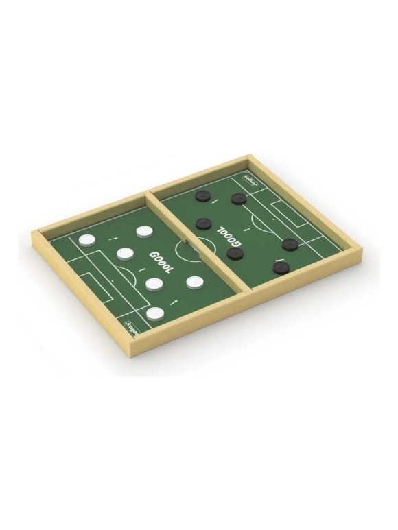 Jogo Gol a Gol da Junges em madeira de reflorestamento (MDF) com elástico para impulsionar. Acompanha 2 times de 6 jogadores (botões de plástico).