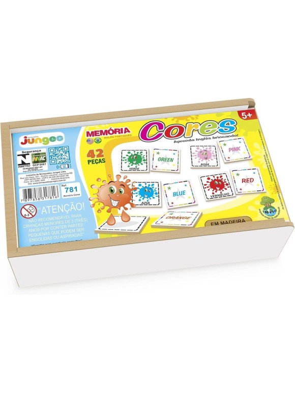 Jogo da Memoria Nome das Cores Ingles/Portugues em MDF com Estojo em Madeira