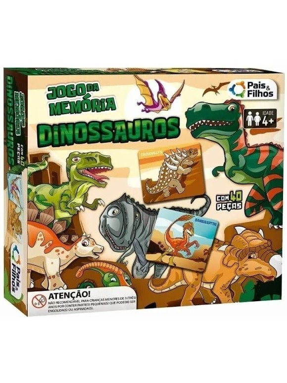 Jogo da Memória Dinossauros Pais & Filhos 40 Peças Educativo