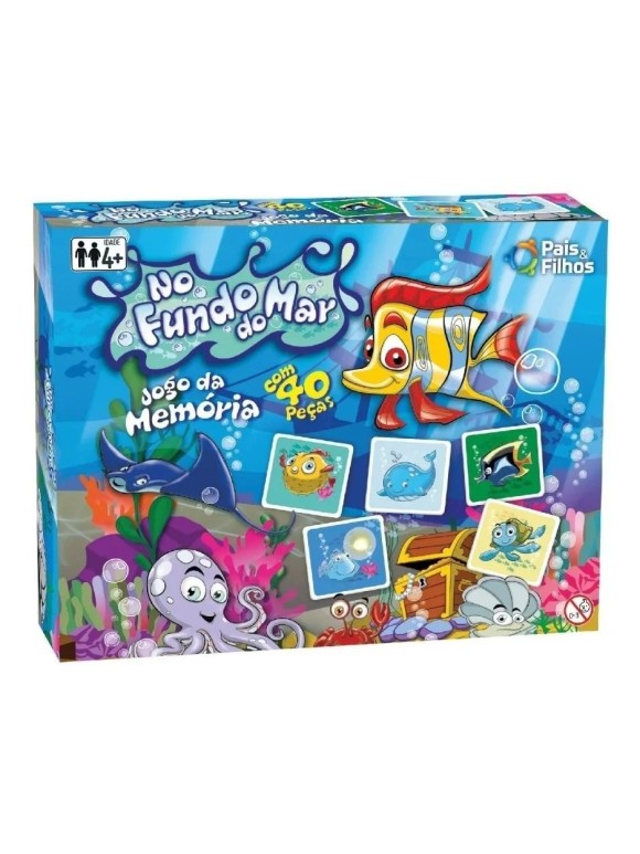 O Jogo da Memória Fundo do Mar – Pais & Filhos é um jogo educativo e divertido composto por 40 cartas (20 pares), com ilustrações coloridas inspiradas no universo marítimo. Recomendado para crianças a partir de 4 anos, desenvolve habilidades cognitivas, concentração, coordenação motora e percepção visual, sendo ideal para momentos em família ou na escola.