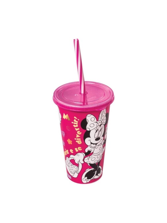 Copo com Tampa e Canudo Minnie Mouse - Rosa