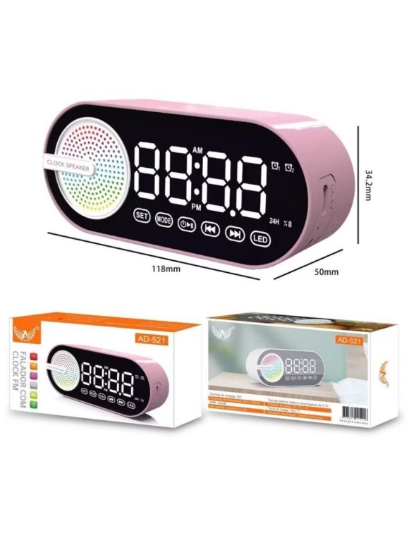 - Clock Speaker Bluetooth com Relógio Digital LED, Despertador, Entrada USB e Som Estéreo Portátil