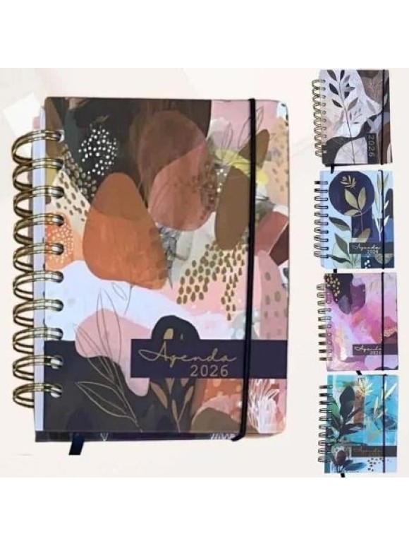 - Agenda 2026 Wire-O Abstrato Pequena 11x15cm Capa Dura Colorida Ideal para Estudo Trabalho e Anotações