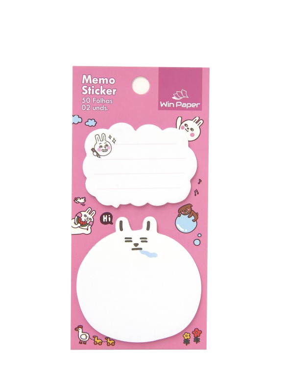 Nota Sticker 50 Folhas Win Paper – Bloco de Anotações Adesivas Decoradas com 2 Formatos Kawaii de Coelhinho e Nuvem, Papelaria Criativa
