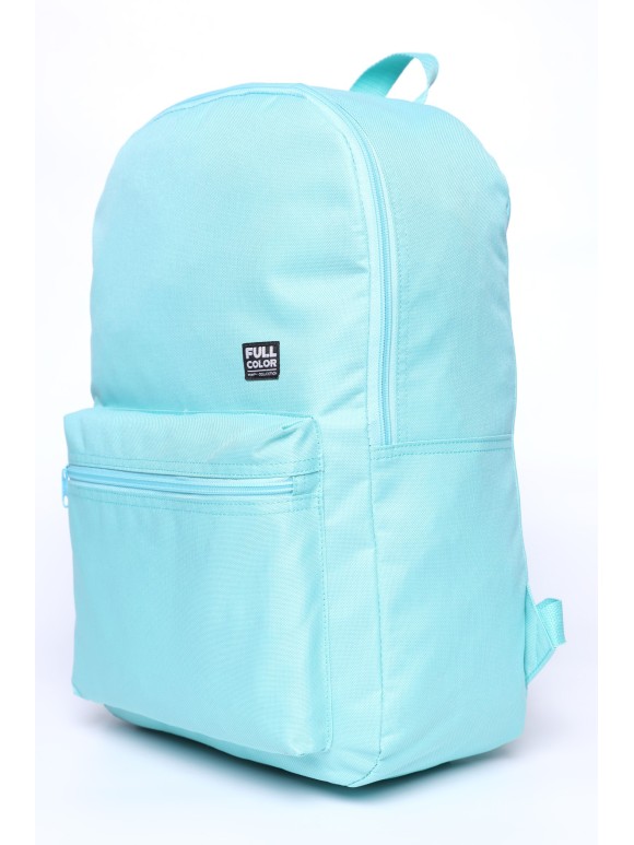 O logotipo discreto FULL COLOR aparece fixado na parte frontal da mochila, proporcionando identidade visual sem exageros e mantendo um aspecto jovem, limpo e contemporâneo.
