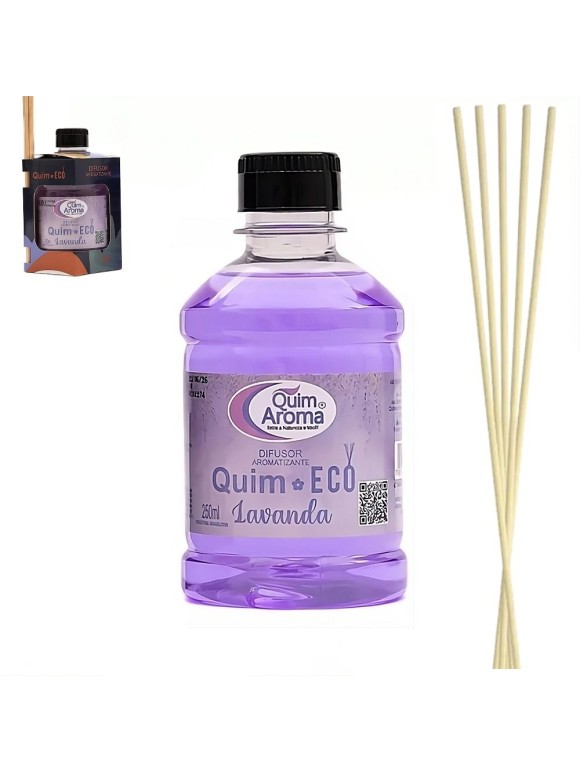 O Difusor QCheirin Lavanda 250ml utiliza o sistema de varetas difusoras, que absorvem a essência e liberam seu perfume de forma natural e contínua. A fragrância é leve e fresca, ideal para quem aprecia ambientes perfumados sem aromas excessivamente doces ou marcantes.
