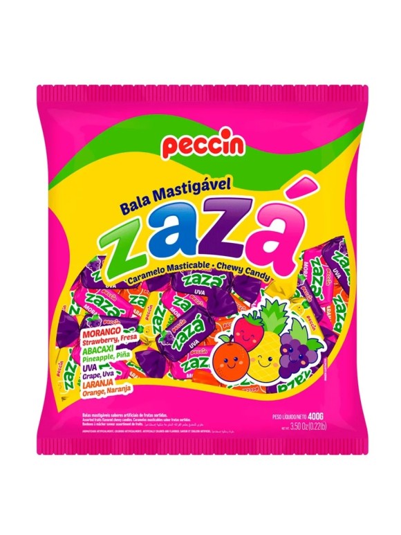 Bala mastigável sabor de frutas sortidas (morango, abacaxi, uva e laranja)