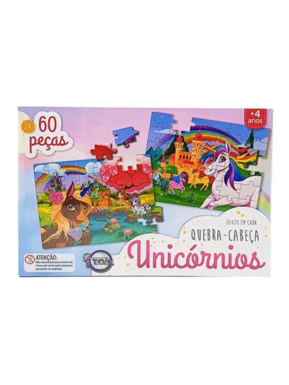 O quebra-cabeça é fabricado em material de alta qualidade para garantir durabilidade e resistência durante seu uso. Muito fofinho, conta com 2 quebra cabeças de 60 peças cada para que as meninas possam montar e dar vida à imagens lindas de unicórnios, tornando este momento ainda mais especial. Além de muito divertido, desenvolve a coordenação motora, raciocínio lógico e garante um delicioso hobbie para todos os momentos.