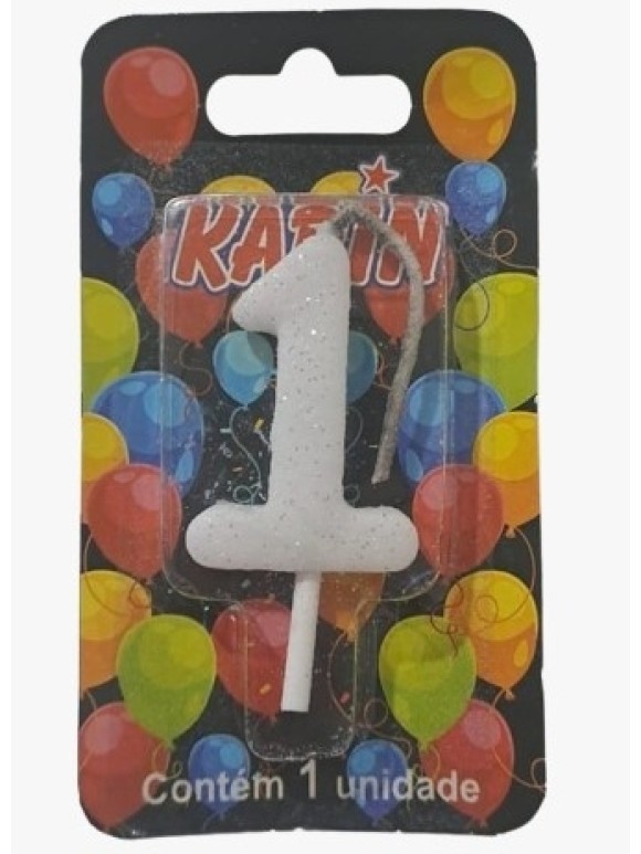 VELA DE ANIVERSARIO N.1 BRANCA C/ GLITTER UN. KARIN