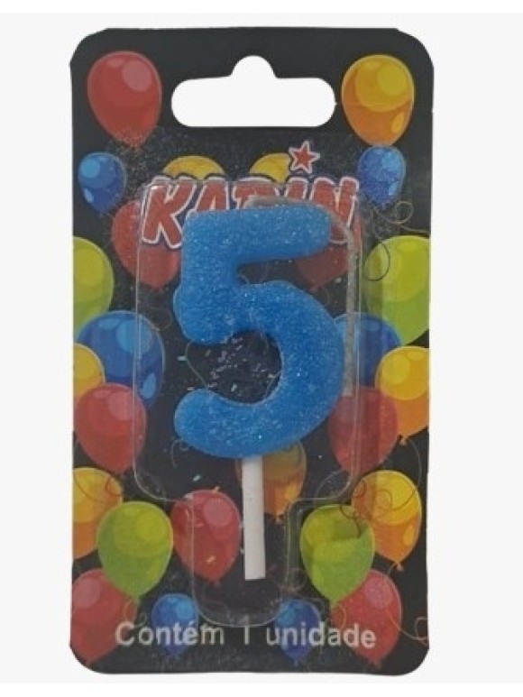 VELA DE ANIVERSARIO N.5 AZUL C/ GLITTER UN. KARIN