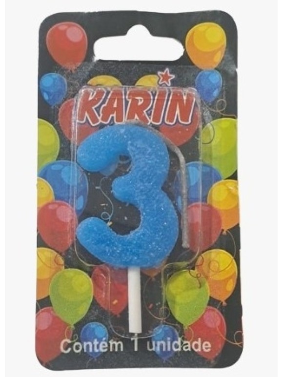 VELA DE ANIVERSARIO N.3 AZUL C/ GLITTER UN. KARIN