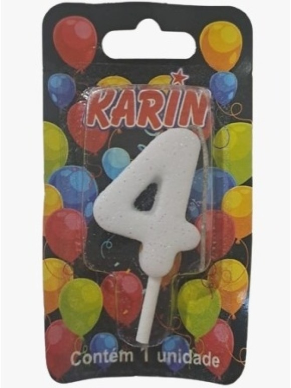 VELA DE ANIVERSARIO N.4 BRANCA C/ GLITTER UN. KARIN