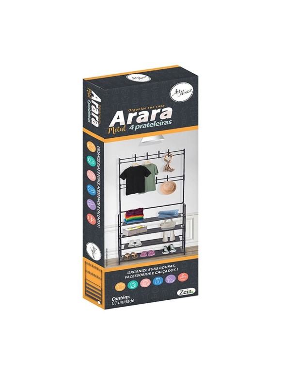A Arara com 4 Prateleiras e 2 Cabides 160x61,5x27,5cm é a solução ideal para quem busca praticidade, organização e resistência em um único produto. Fabricada em metal e plástico de alta qualidade, ela combina durabilidade com leveza, permitindo uma organização completa de roupas, calçados, acessórios e muito mais. Seu design moderno e funcional foi desenvolvido para otimizar espaços, sendo perfeita para quartos, lavanderias, closets, lojas ou até mesmo escritórios.