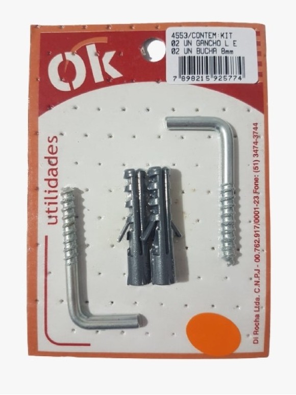 OK GANCHO L C/BUCHAS 8MM C/4 UN.