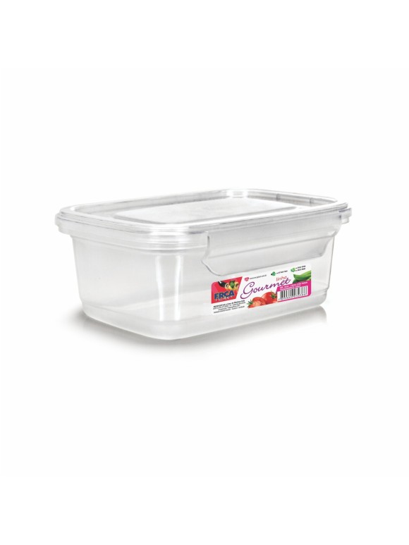 Prática e funcional, a Caixa Retangular com Trava Transparente de 750ml da ERCAPLAST é ideal para armazenar alimentos e outros itens, garantindo organização e segurança.