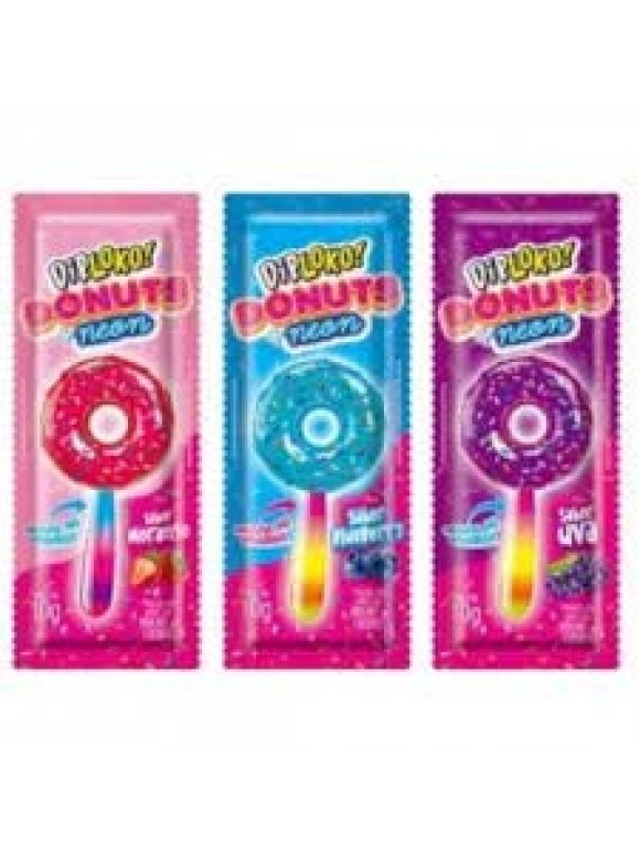 PIRULITO DIPLOKO NEON DONUTS 10G UN. SABOR FRUTAS SORTIDAS DANILLA