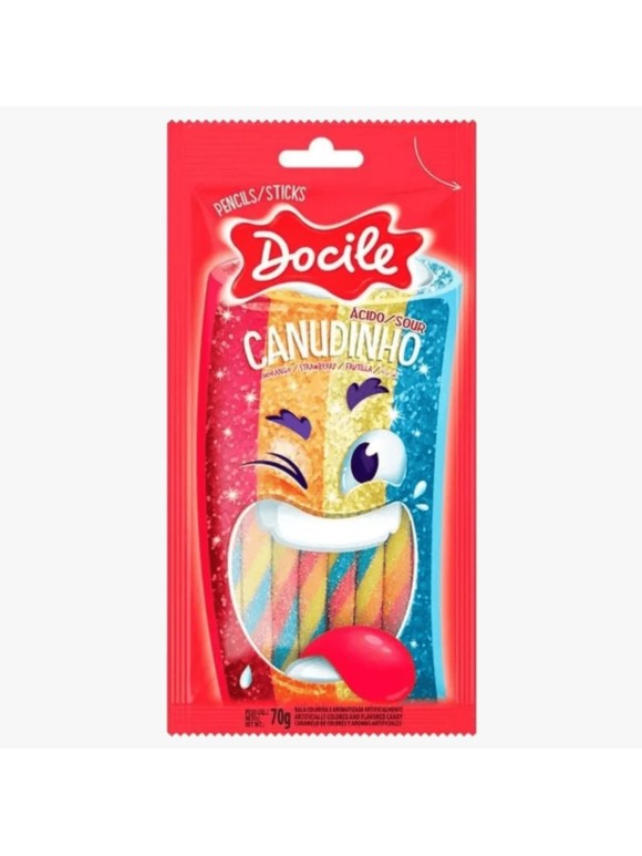 BALA REGALIZ CANUDINHO COLORIDO MORANGO CITRICO 70G UN. DOCILE