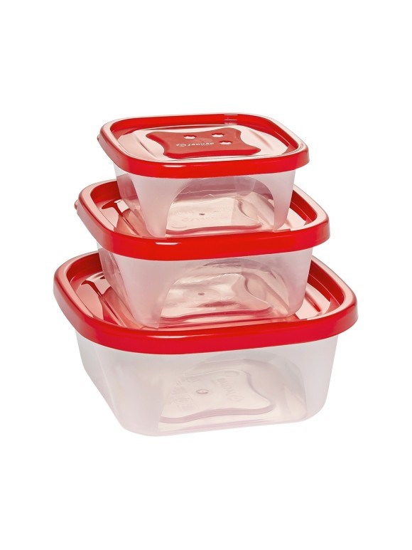 - Conjunto Potes Monza 3 Peças – Potes Plásticos com Tampa Vermelha, Corpo Translúcido, Empilháveis, Resistentes e Ideais para Geladeira e Marmitas