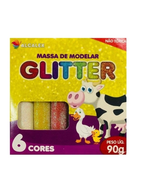 MASSA DE MODELAR C/6 CORES 90G COM GLITTER UN.