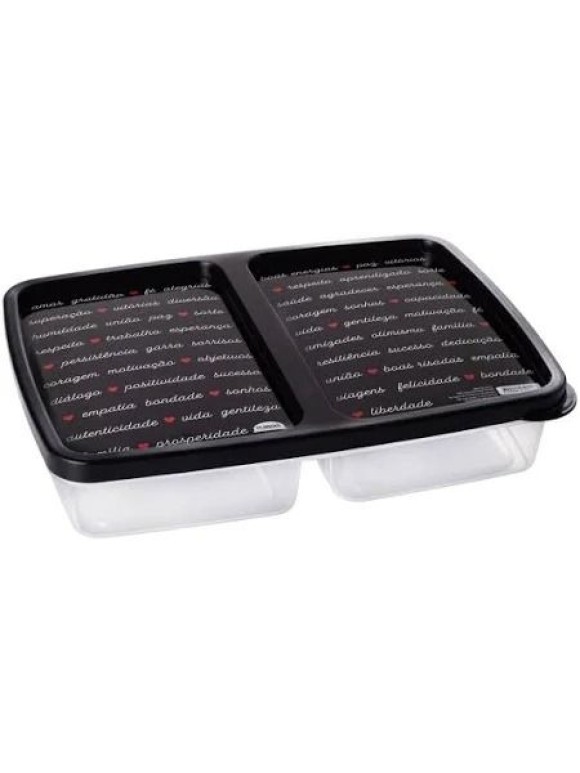 O Pote 2 Divisórias Decorado Retangular é a combinação ideal de praticidade e estilo para o dia a dia. Desenvolvido para quem busca organização e funcionalidade na hora de armazenar ou transportar refeições, ele conta com duas divisórias internas que permitem separar os alimentos de forma eficiente, mantendo sabores e texturas preservados. Além da praticidade, o pote possui design decorado, que traz um toque moderno e elegante, tornando-o um item que se destaca na cozinha ou no ambiente de trabalho.