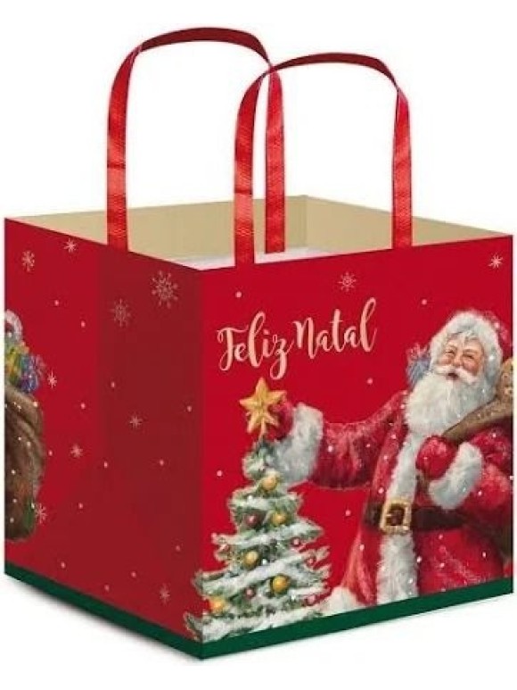 A combinação entre dimensões compactas e material de qualidade assegura que a sacola seja tanto funcional quanto estética. Seu acabamento cuidadoso e design colorido tornam-na uma embalagem que valoriza qualquer presente natalino.