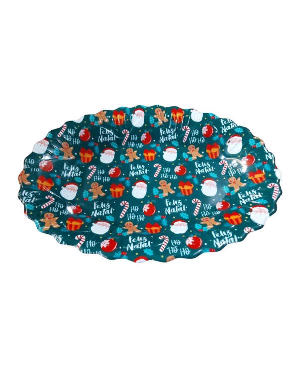 Bandeja Oval Flowers Natalina 40x29x2,9cm Decorativa para Mesa Posta de Natal – Servir Doces, Petiscos e Sobremesas