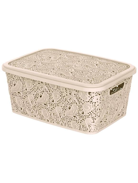 CESTO ORGANIZADOR C/ TAMPA 5,5L RENDA FLORAL UN.