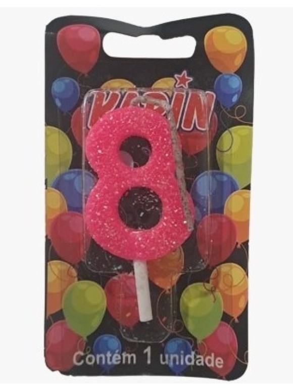 VELA DE ANIVERSARIO N.8 ROSA C/ GLITTER UN. KARIN