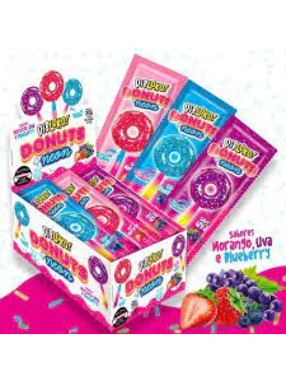 PIRULITO DIPLOKO NEON DONUTS CX C/30 UNDS 300G SABOR FRUTAS SORTIDAS DANILLA